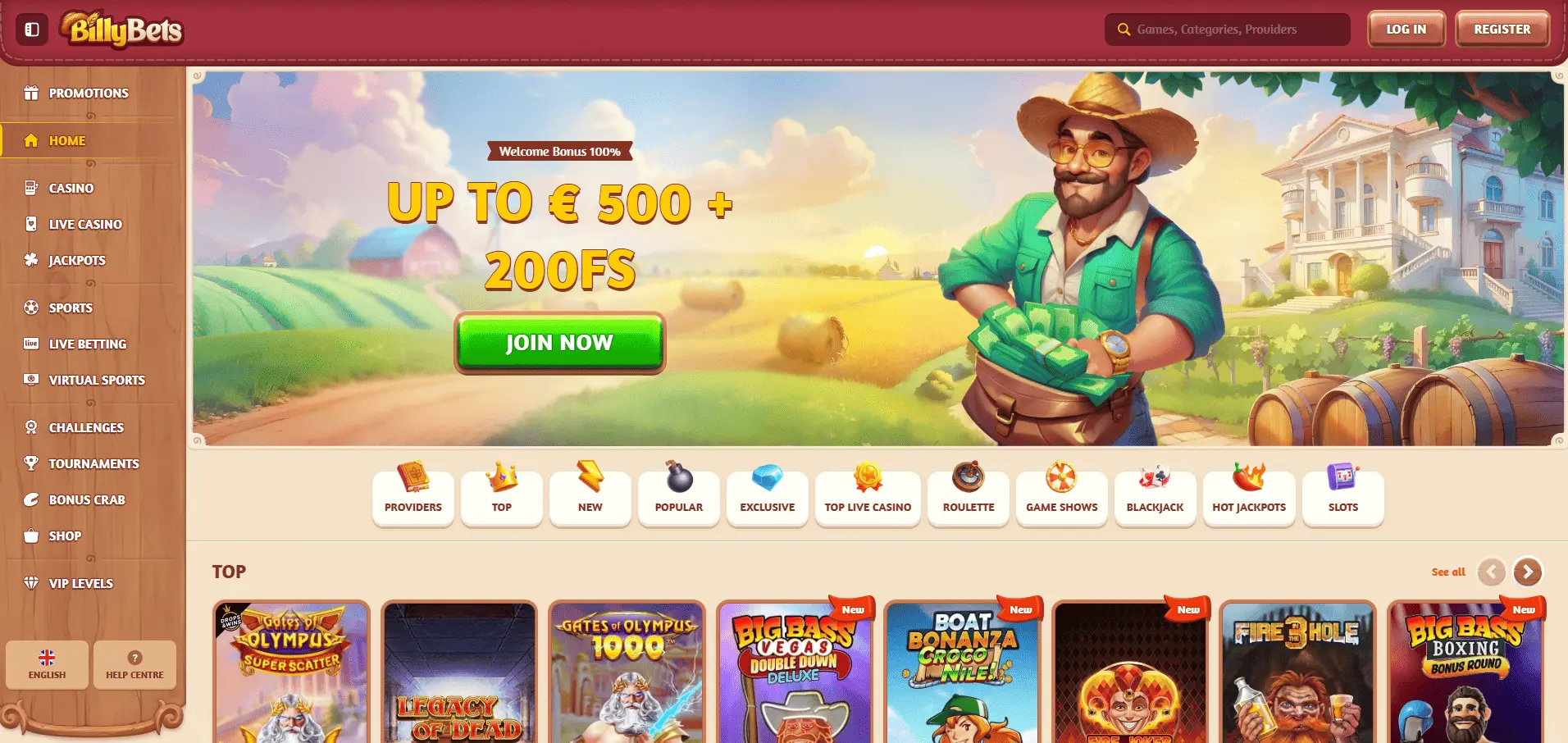 BillyBets Casino piedāvā visiem jauniem klientiem lielisku 500 eiro vērtu depozīta bonusu un 200 bezmaksas griezienus.