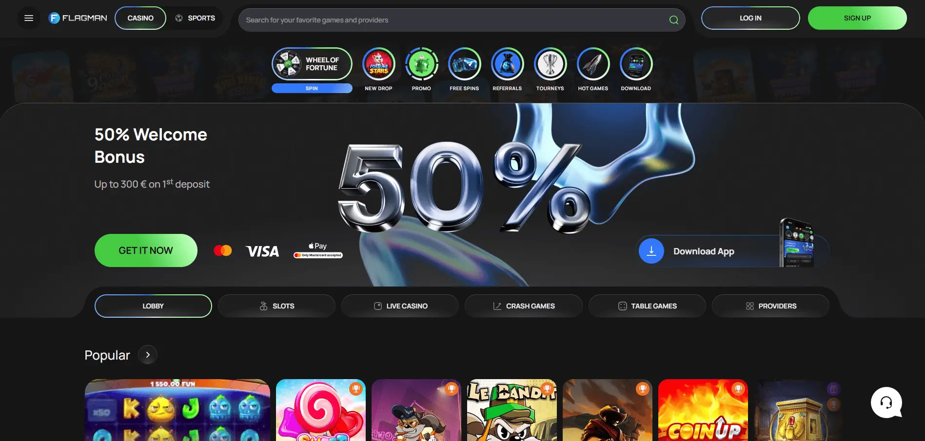 Flagman Casino ir tiešsaistes kazino, kas piesaista spēlētājus ar plašu spēļu klāstu un pievilcīgiem bonusiem. Daudzi spēlētāji novērtē šo kazino par tā lietotājam draudzīgo saskarni un vieglu navigāciju, kas ļauj ātri atrast vēlamās spēles un akcijas.