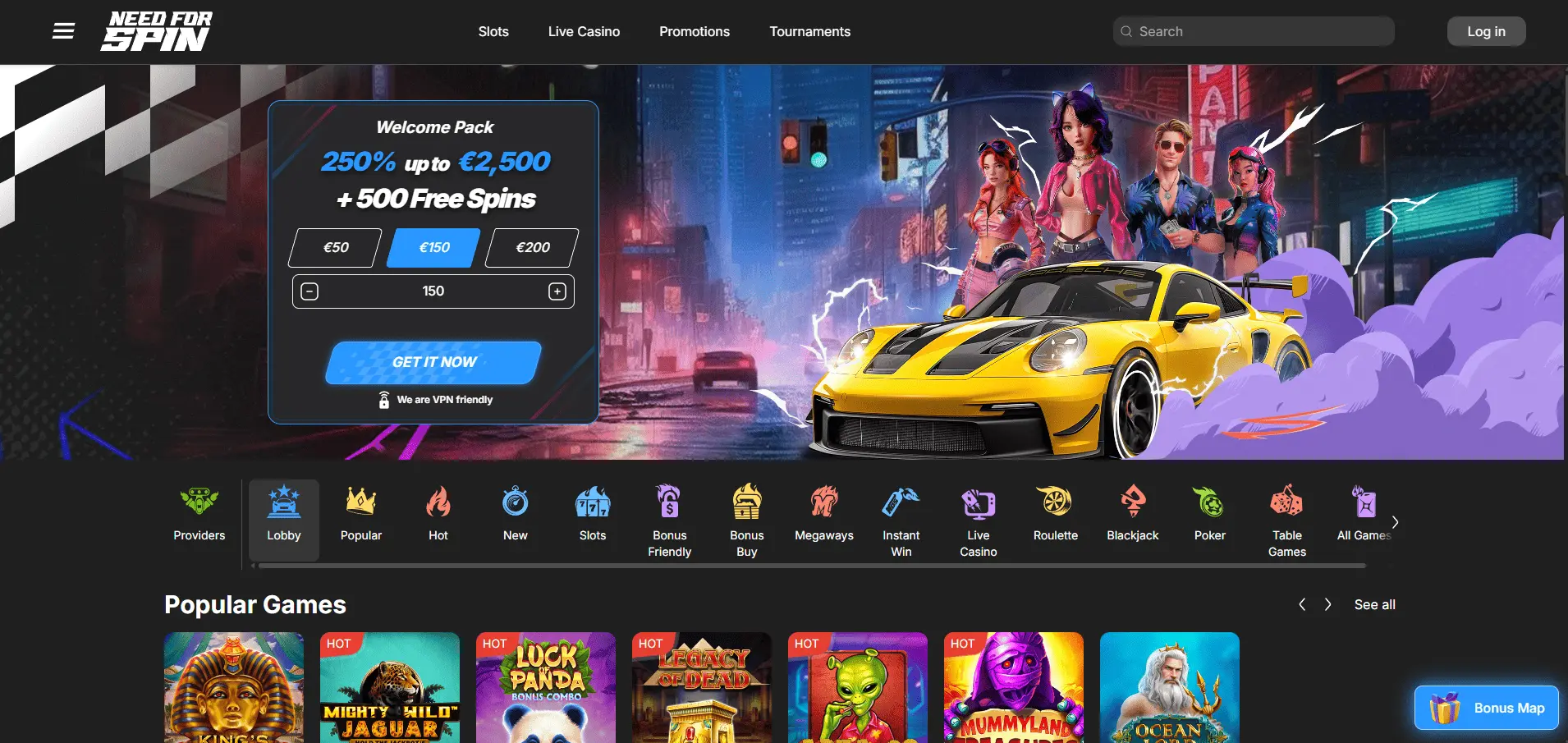 - Dibināts 2022. gadā: Need for Spin ir ātri kļuvis populārs, pateicoties modernajam dizainam un uzticamai Curacao eGaming licencei, ko pārvalda GBL Solutions N.V.