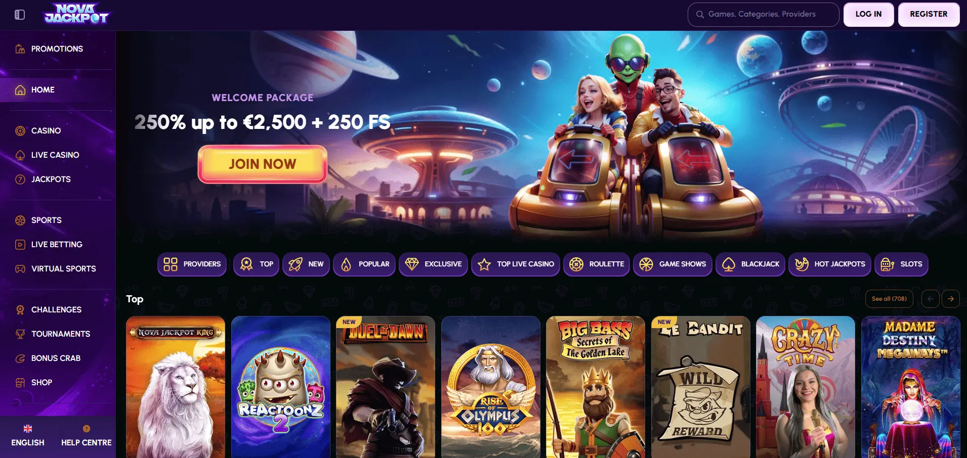 Nova Jackpot online kazino ir tiešsaistes azartspēļu platforma, kas piedāvā plašu spēļu klāstu, sākot no klasiskajām kazino spēlēm līdz moderniem video spēļu automātiem. Nova Jackpot piedāvā visiem jauniem klientiem lielisku 2500 eiro vērtu depozīta bonusu un 250 bezmaksas griezienus.
