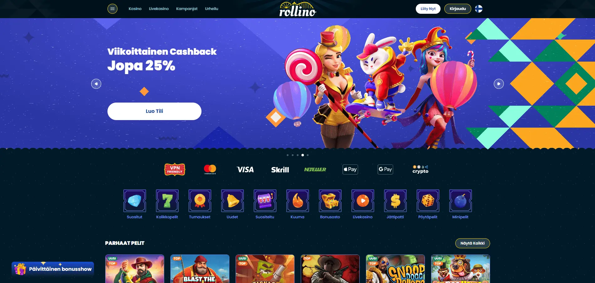 Rollino Casino ir mūsdienīgs tiešsaistes kazino, kas piedāvā plašu spēļu klāstu, izdevīgus bonusus un aizraujošu spēļu pieredzi.