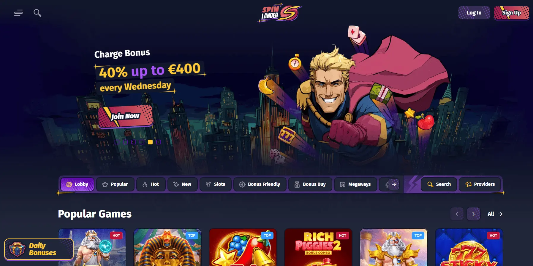SpinLander Casino ir 2025. gadā dibināts tiešsaistes kazino ar superhero tematiku, kas piedāvā vairāk nekā 5000 spēļu, dāsnus bonusus un drošu spēļu vidi ar Anjouan Gaming licenci.