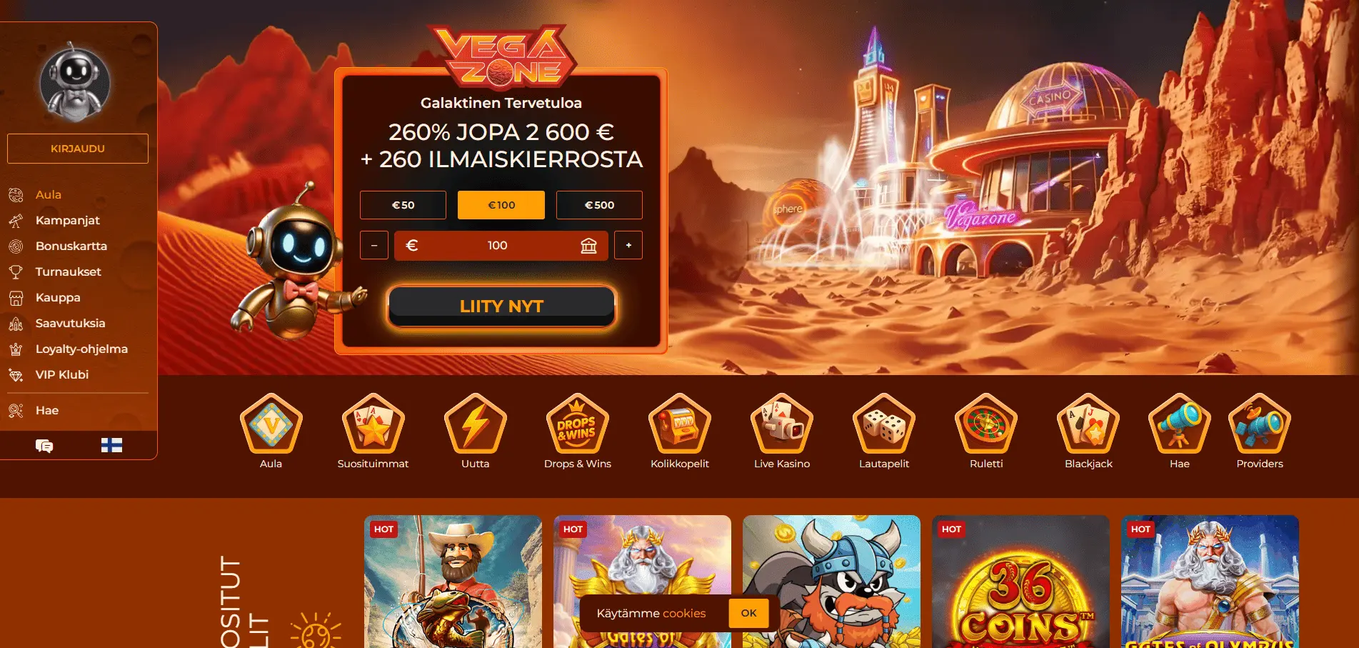 Vegazone Casino piedāvā dinamisku spēļu vidi ar plašu spēļu klāstu. Visiem jauniem spēlētājiem tiek piedāvāts 2600€ un 260 FS bonusā.